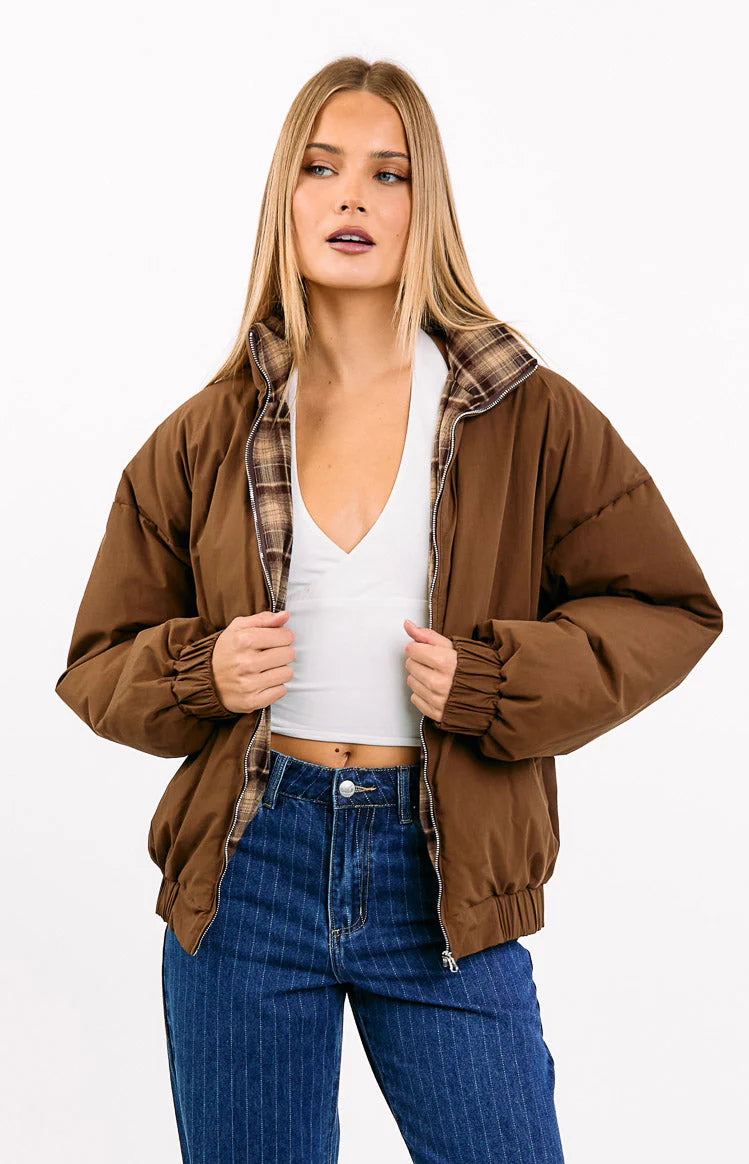Stay warm and on-trend this season in our All I Wanted Puffer Jacket, your new favourite staple for chilly days and casual outings. This essential jacket features a cozy high neck, a zip-up front, and a stylish plaid lining for a touch of classic cool. Throw it on over your favourite jeans and a basic top for an instantly stylish and comfortable look!
