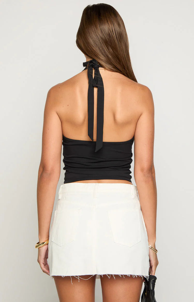 Our Amora Black Halter Crop Top is the ultimate elevated basic, offering both versatility and a flattering fit for any occasion! Crafted from stretch jersey fabric, it features a halter neckline and adjustable back neck tie for the perfect fit. Pair it with jeans for an effortless everyday look or style it with a mini skirt for a sweet festival or party outfit!