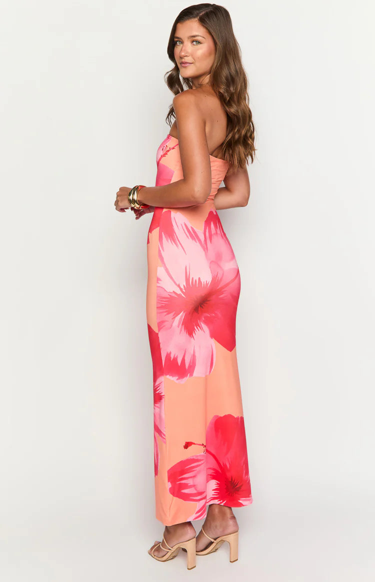 Our Arizona Orange Floral Strapless Maxi Dress is a vibrant celebration of summer, designed to make you stand out! The bold orange floral print and strapless silhouette create a chic and fun vibe, while the bodycon fit and stretch jersey fabric ensure a flattering, comfortable wear. Fully lined for extra comfort, this dress is perfect for evening dinners or sunny days out. Pair with a statement necklace and strappy heels for a night out, or go for chunky sandals for a relaxed day look!