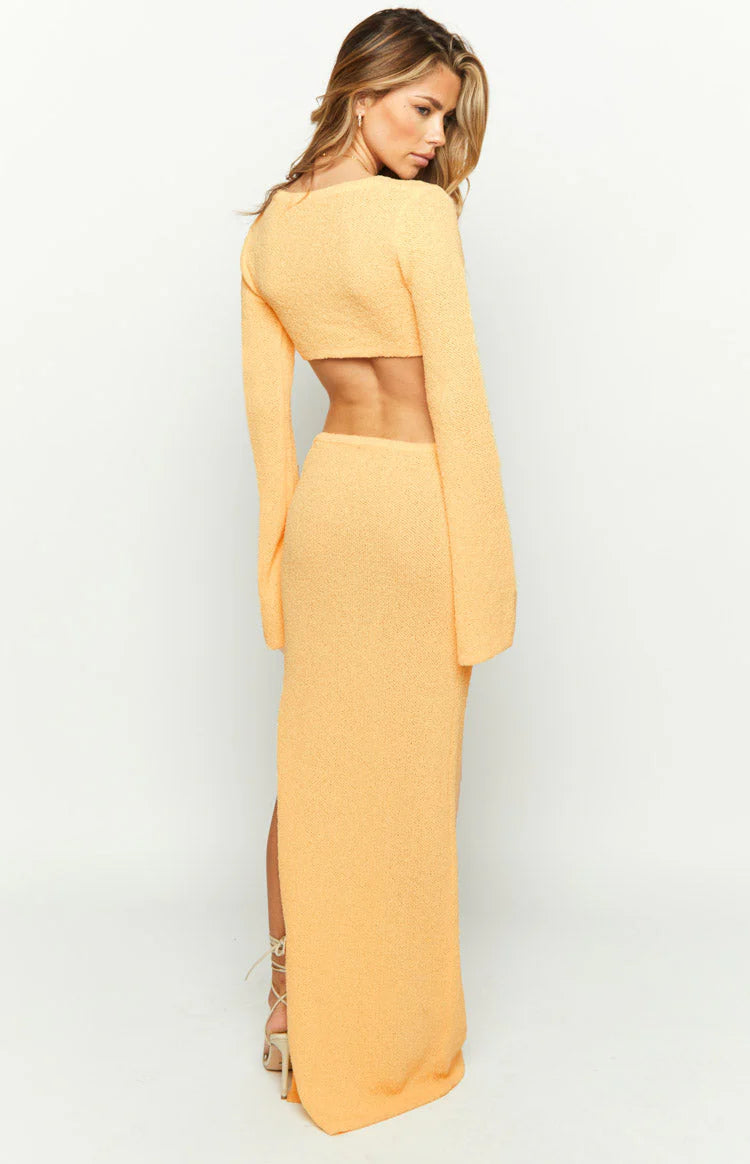 Be vacation ready with our gorgeous long sleeve maxi dress. It's knit material is perfect for colder nights but also light enough for vacation. Style with heels and a mini shoulder bag for dinner or a waterfront dinner!