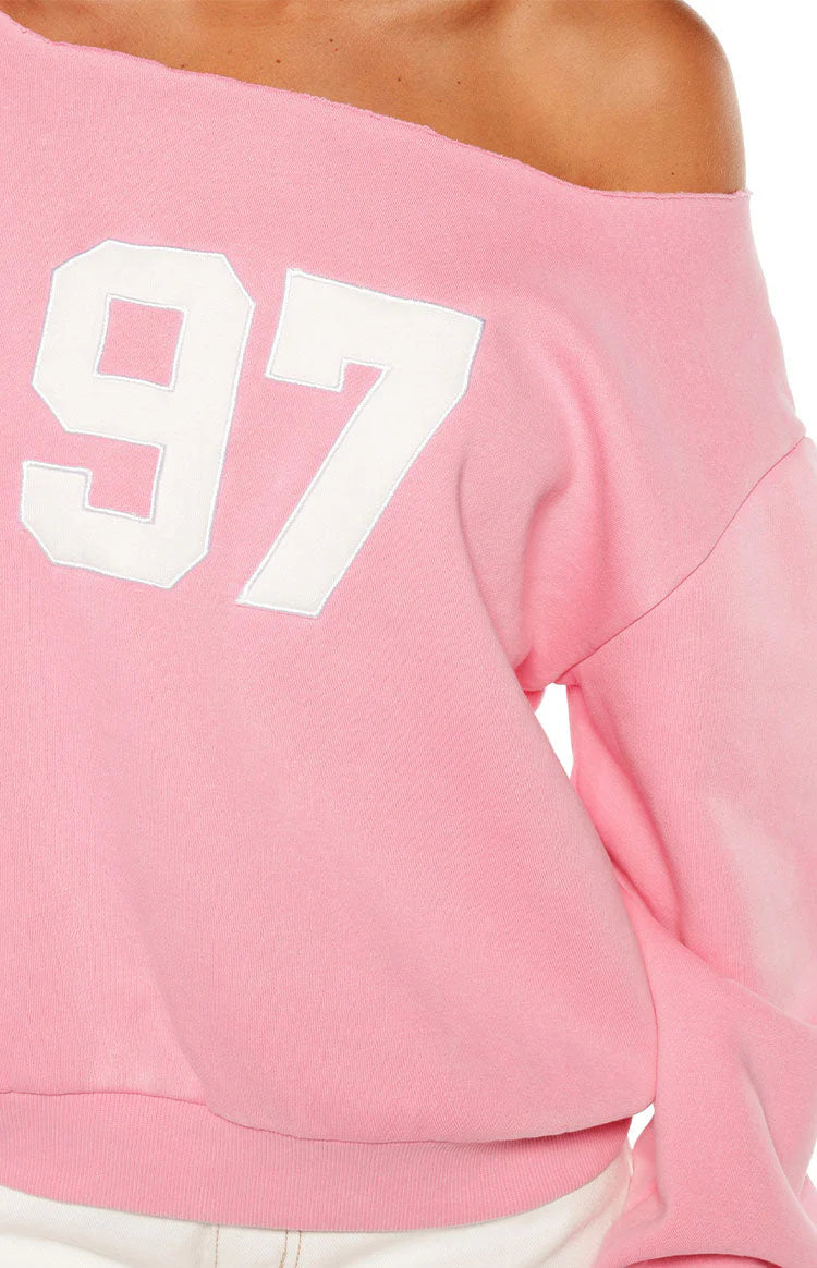 Effortless style starts here with our Buffie Pink Wash Off Shoulder Sweater, perfect for a casual weekend or grabbing coffee with friends. Made from a soft fleece with a cool washed effect, it has a relaxed, oversized fit and a playful off-shoulder neckline, while the '97' appliqu¨¦ and ripped details add an edgy, vintage-inspired finish. Pair it with your favourite denim and sneakers for a comfortable, laid-back look.