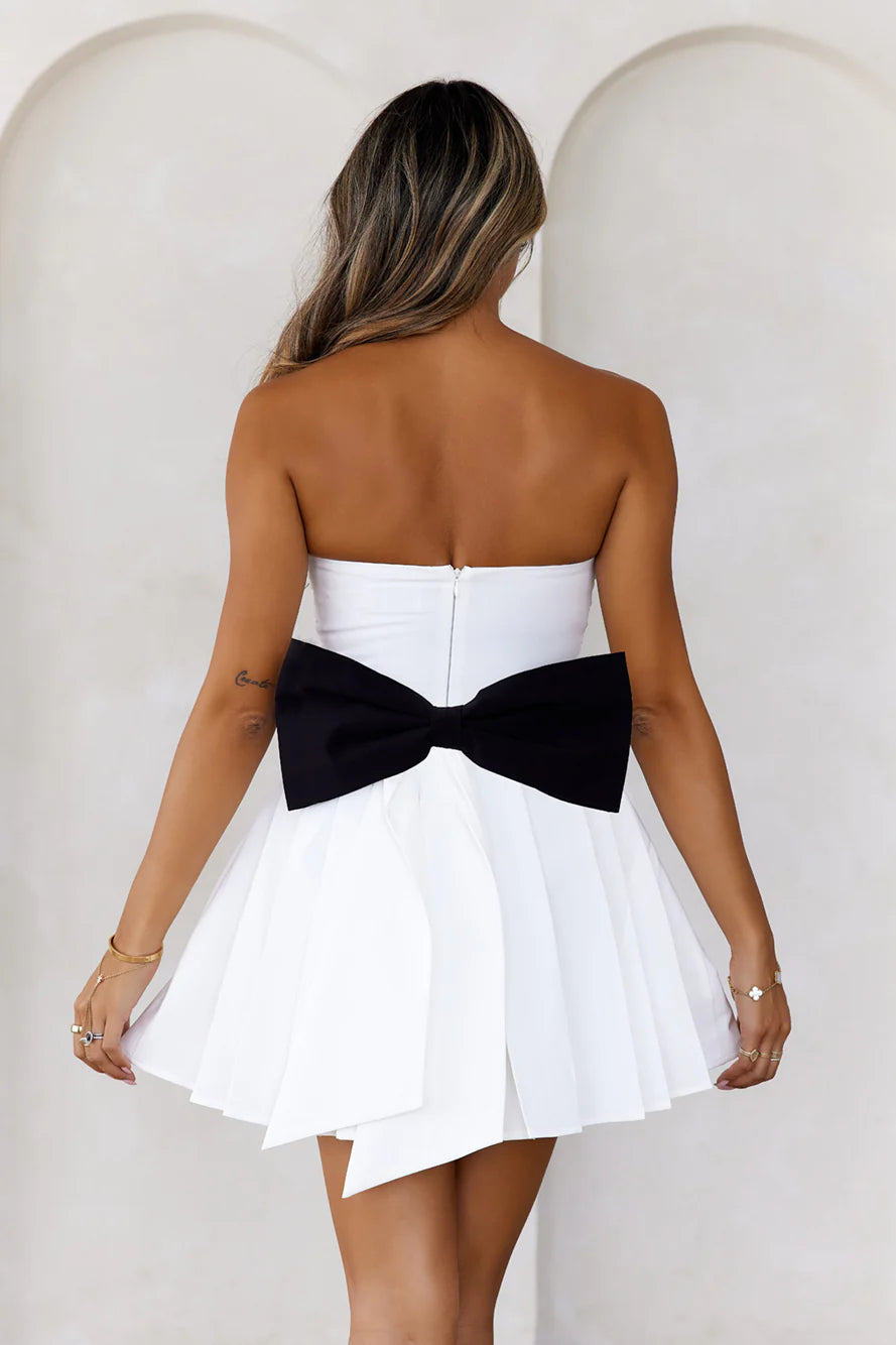 You deserve all the attention, lovely, and the Celebrating Me Strapless Mini Dress is the style to do just that. Featuring an A-line silhouette, a pleated skirt, and a statement black bow to the back that can easily be removed switching up your look! Style with heels and accessories.