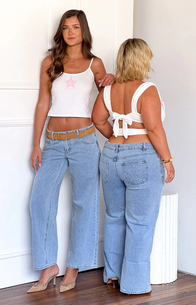 Looking for the perfect everyday jean with a little extra? From the low rise fit to the adorable star patch detail on the back pocket, our Clara Star Light Wash Denim Low Rise Jeans are the perfect cool and casual staple! Style with a baby tee and your favourite sneakers for a classic cute and comfy look!