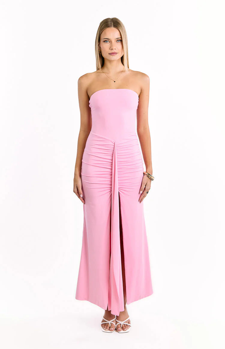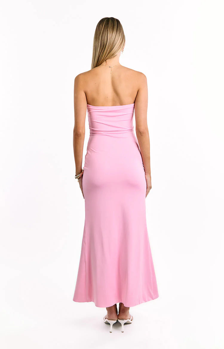 Pink Strapless Draped Jersey Maxi Dress