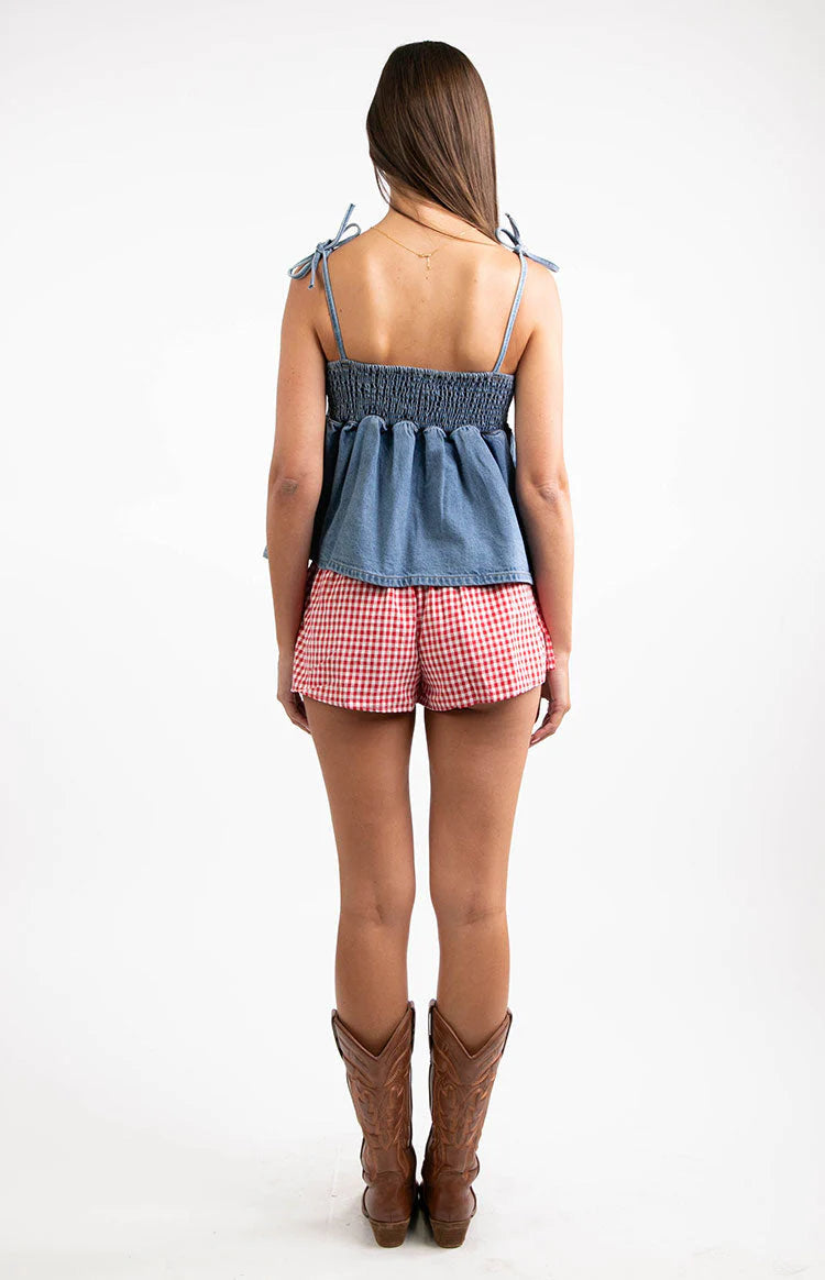 Get ready for festival season in our Ethel Blue Denim Top! This unique strapless top features a cropped fit and corset-style seam detailing through the bodice for a structured look. For the perfect festival outfit, pair it with high-waisted denim and your favourite boots.