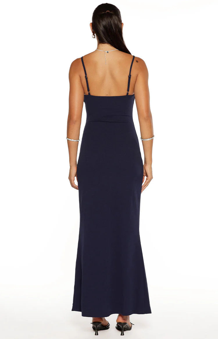 Elevate your evening wear with our Gracy Navy Crepe Formal Maxi Dress, perfect for a wedding or formal event! Made from stretch crepe, this maxi features a flattering gathered bust detail, adjustable straps, and a statement thigh split for an elegant silhouette. Complete the look with strappy heels and a sparkling clutch for a refined and unforgettable finish.