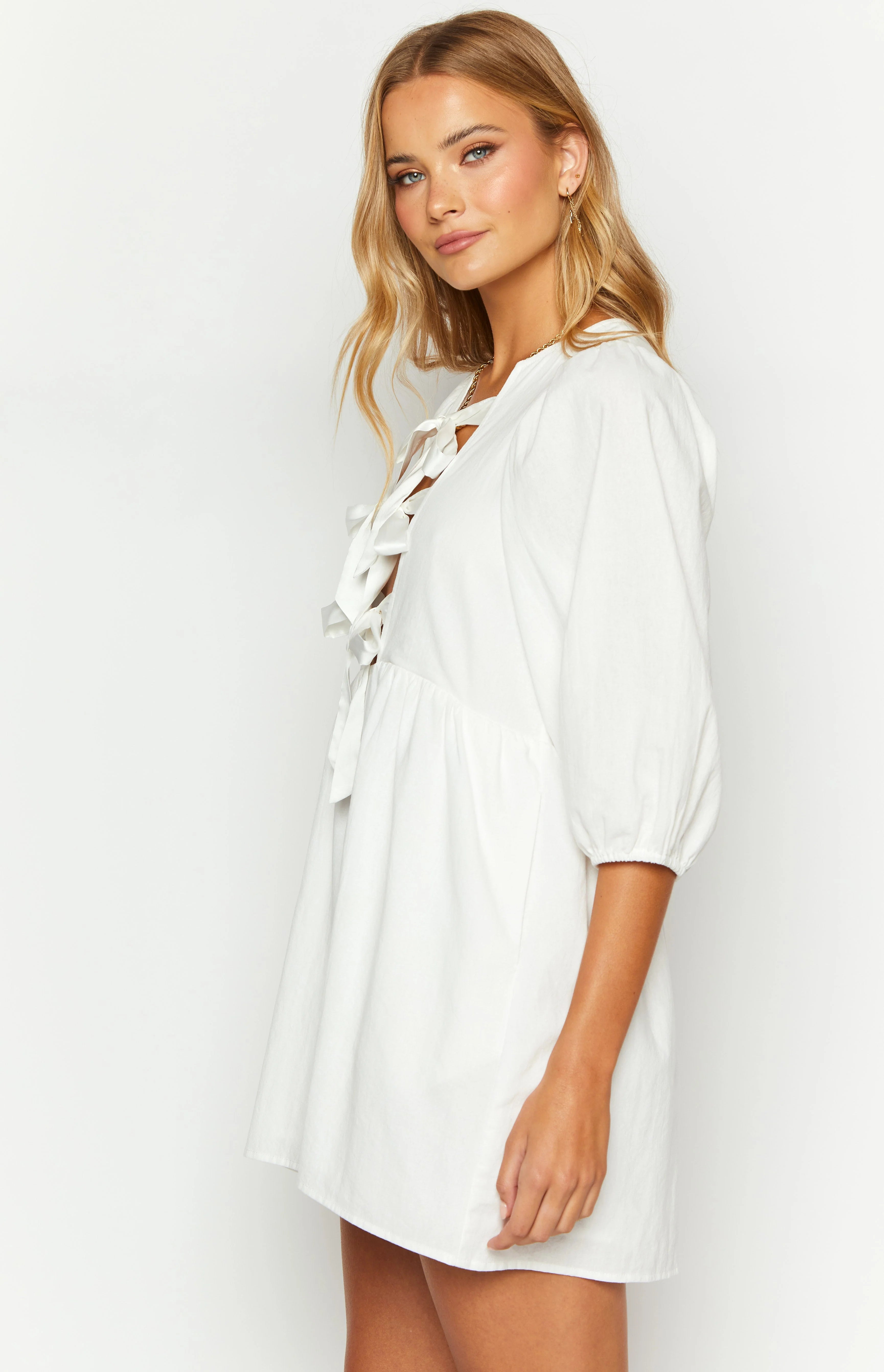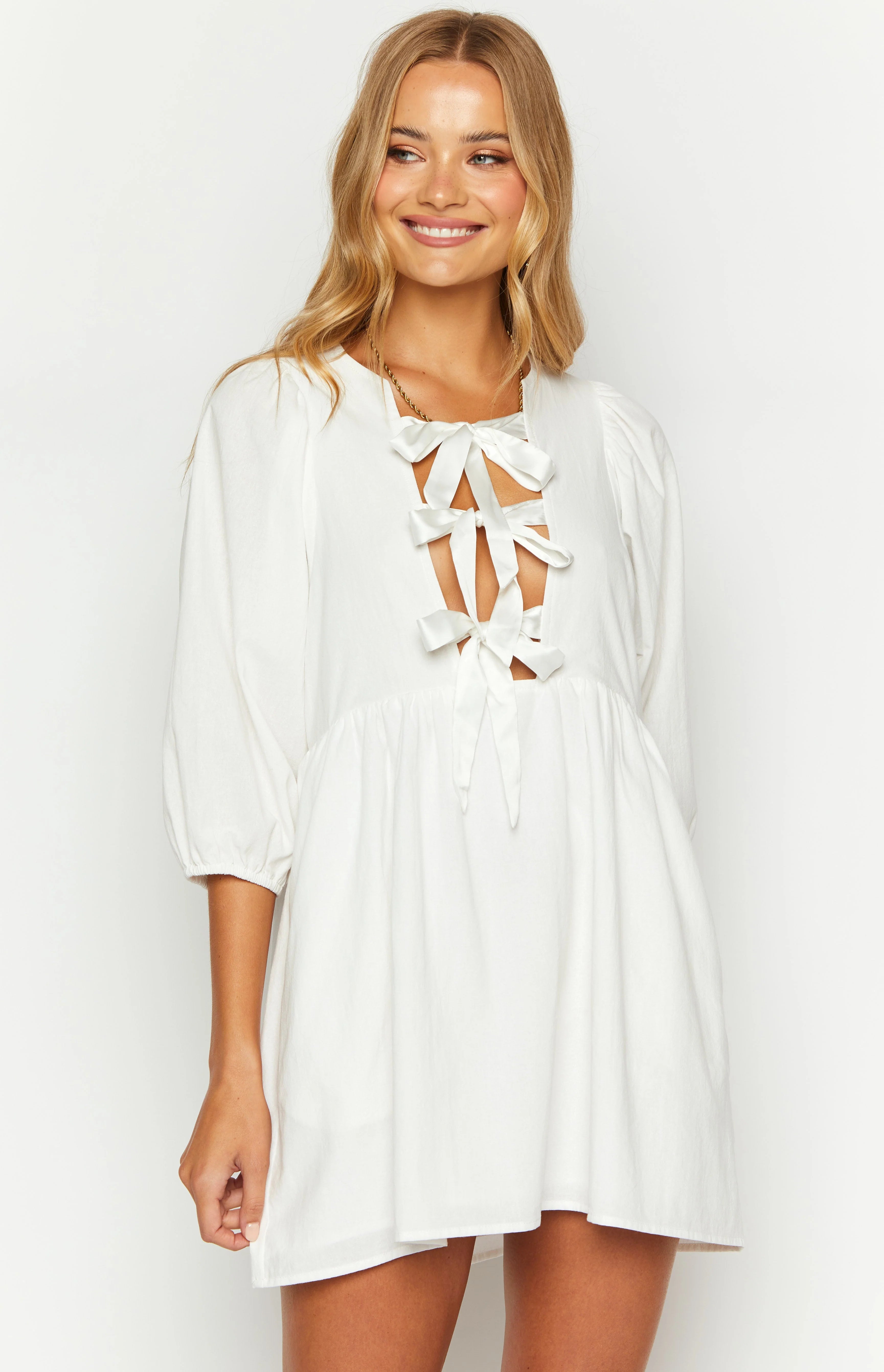 Effortlessly chic and feminine, the Issy White Mini Dress is perfect for all your favourite occasions. The lightweight material and flowy style make it comfortable for all-day wear, while the balloon sleeve style adds a touch of elegance. Complete the look with sandals and a?bag, and wear it to brunch, a bridal shower, or any other special event.