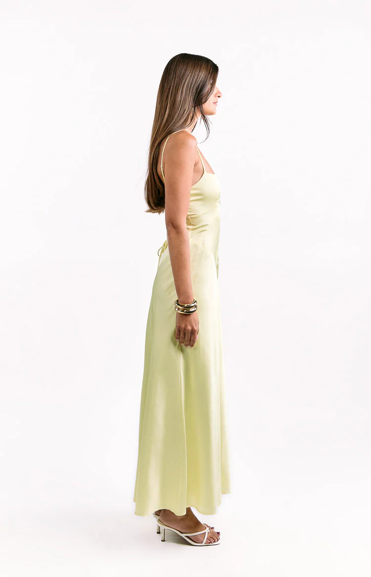 Yellow Satin Lace-Up Maxi Dress
