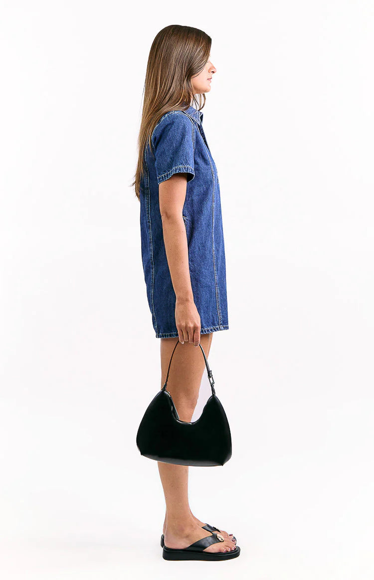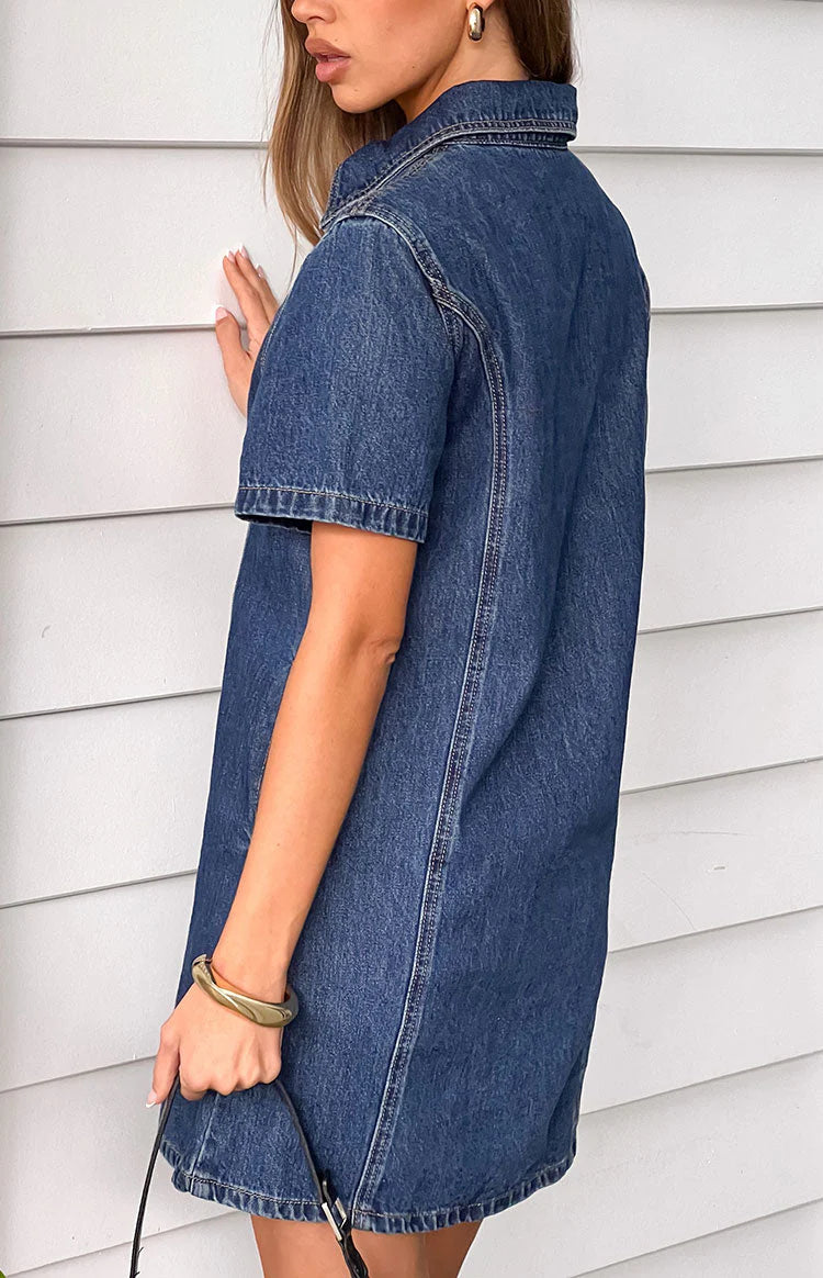 Effortless style starts here with our Lachie Dark Wash Denim Mini Dress, perfect for a casual day event! This timeless mini features classic collar and placket details with short sleeves for a relaxed, shirt-dress vibe. Add a pair of boots for an edgy touch or sneakers for a cool-girl look.