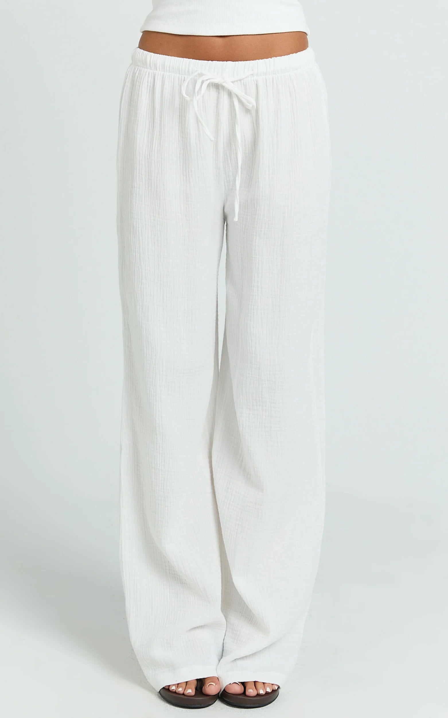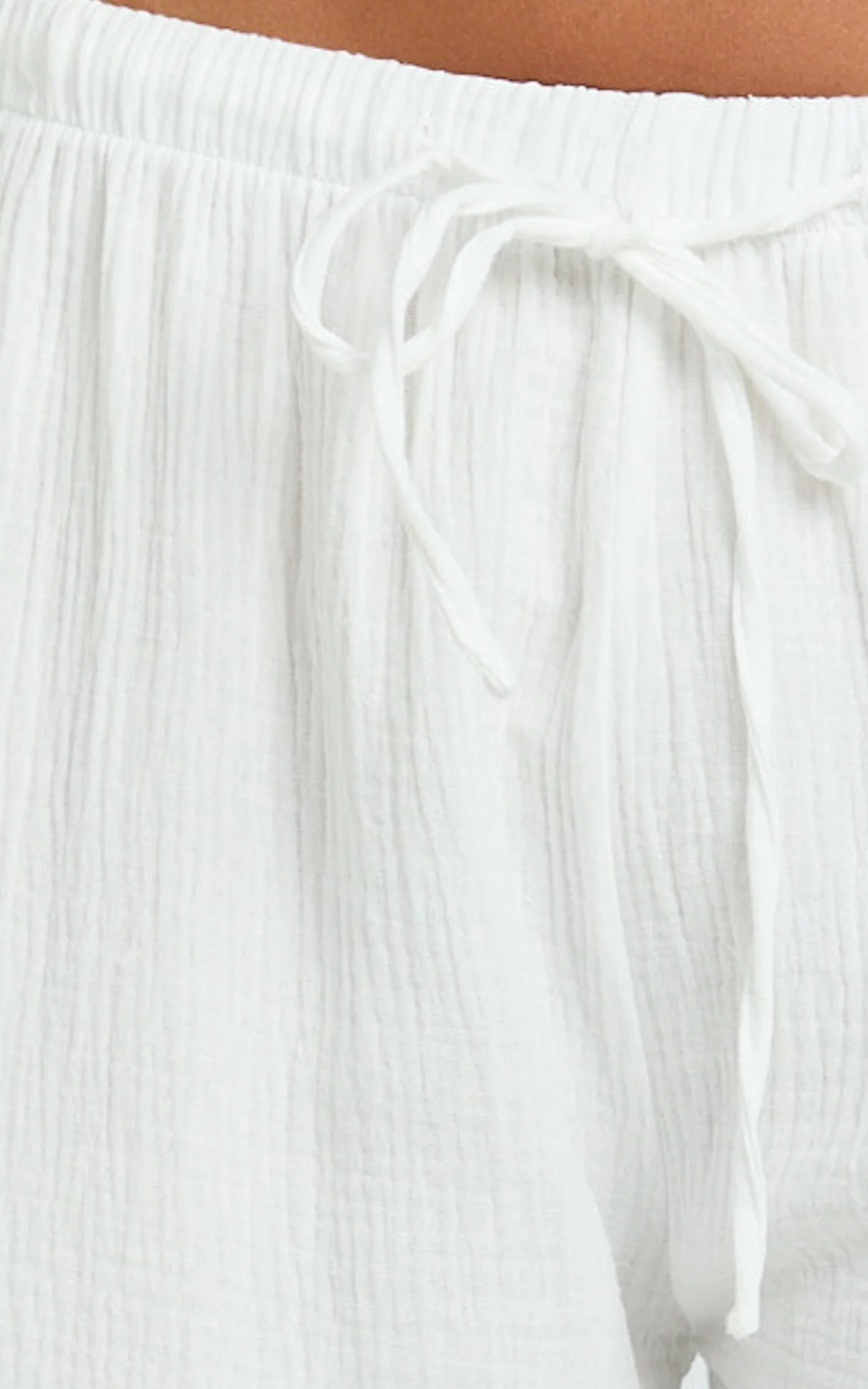The clean white hue leans into a minimalist, monochrome moment, while the soft drape and straight leg keep the silhouette flattering and chill. Style them high or mid on the waist, add a cropped tank and slides, and you’re set from beach walks to brunch.