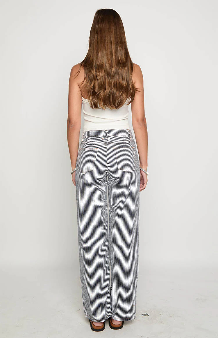The Top Model Navy Stripe Jean by Lioness is a versatile wardrobe essential! With a low-rise baggy fit and contrast stitching, these jeans offer a chic yet relaxed look that¡¯s perfect for a night out or a stylish business day. Pair them with a fitted top and heels for a polished look, or dress them down with sneakers for a more casual vibe!