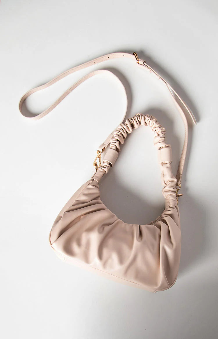 Upgrade your style with the Lizzi Cream Handbag! This elegant shoulder bag features a sophisticated cream tone, scrunch handle for added comfort, and an inner metal clasp closure for security. With gold toned hardware, this bag is the perfect accessory for any outfit.