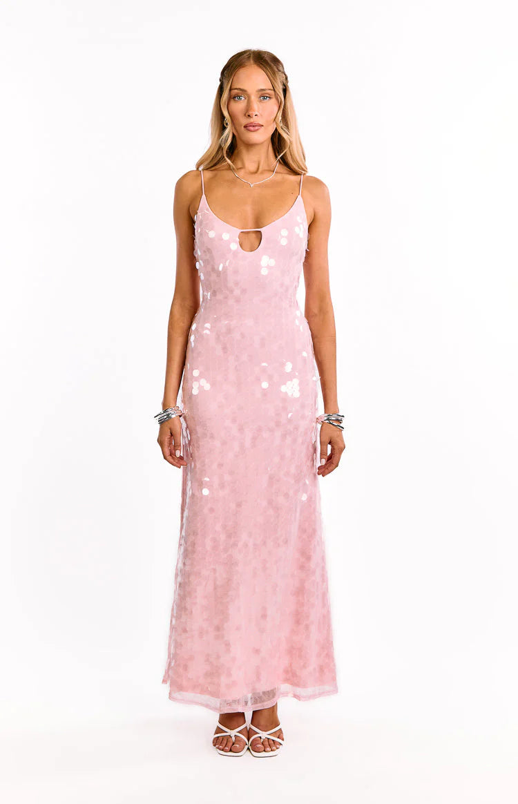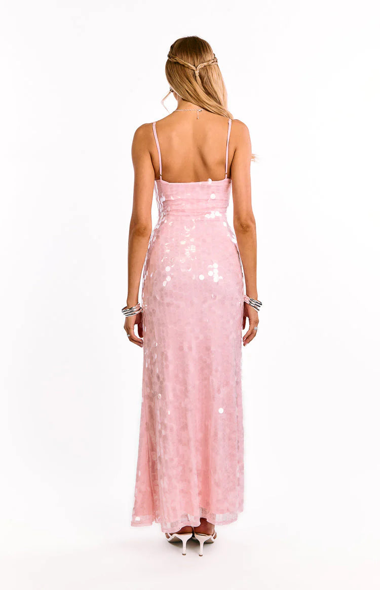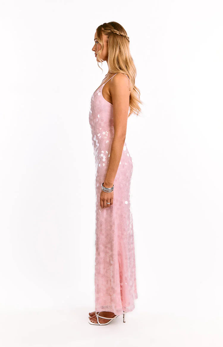 Ready to be the main event? Meet our Lyanna Pink Sequin Maxi Dress! Perfect for your next formal, this gown features a sophisticated scoop neckline with a keyhole cutout and is covered in sparkling sequins. Simply add your favourite heels and a dainty clutch to complete your show-stopping look.