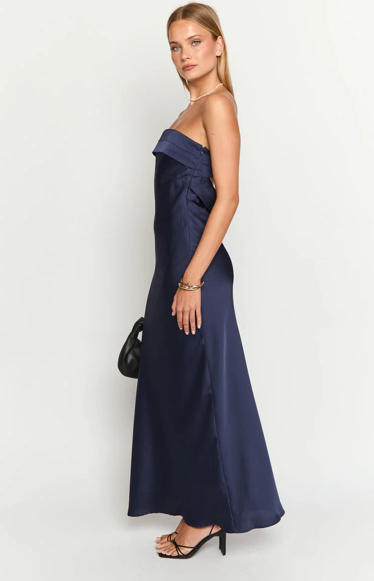 Navy Satin Maxi Dress