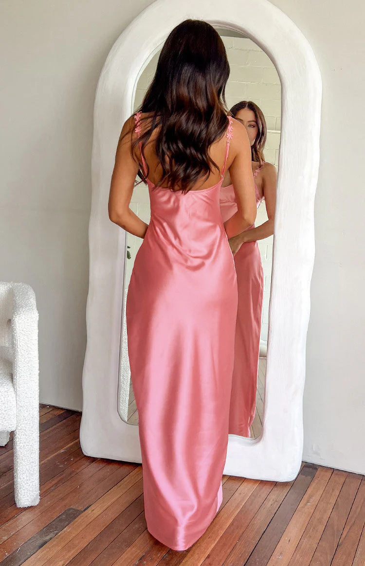 Pink Satin Maxi Dress