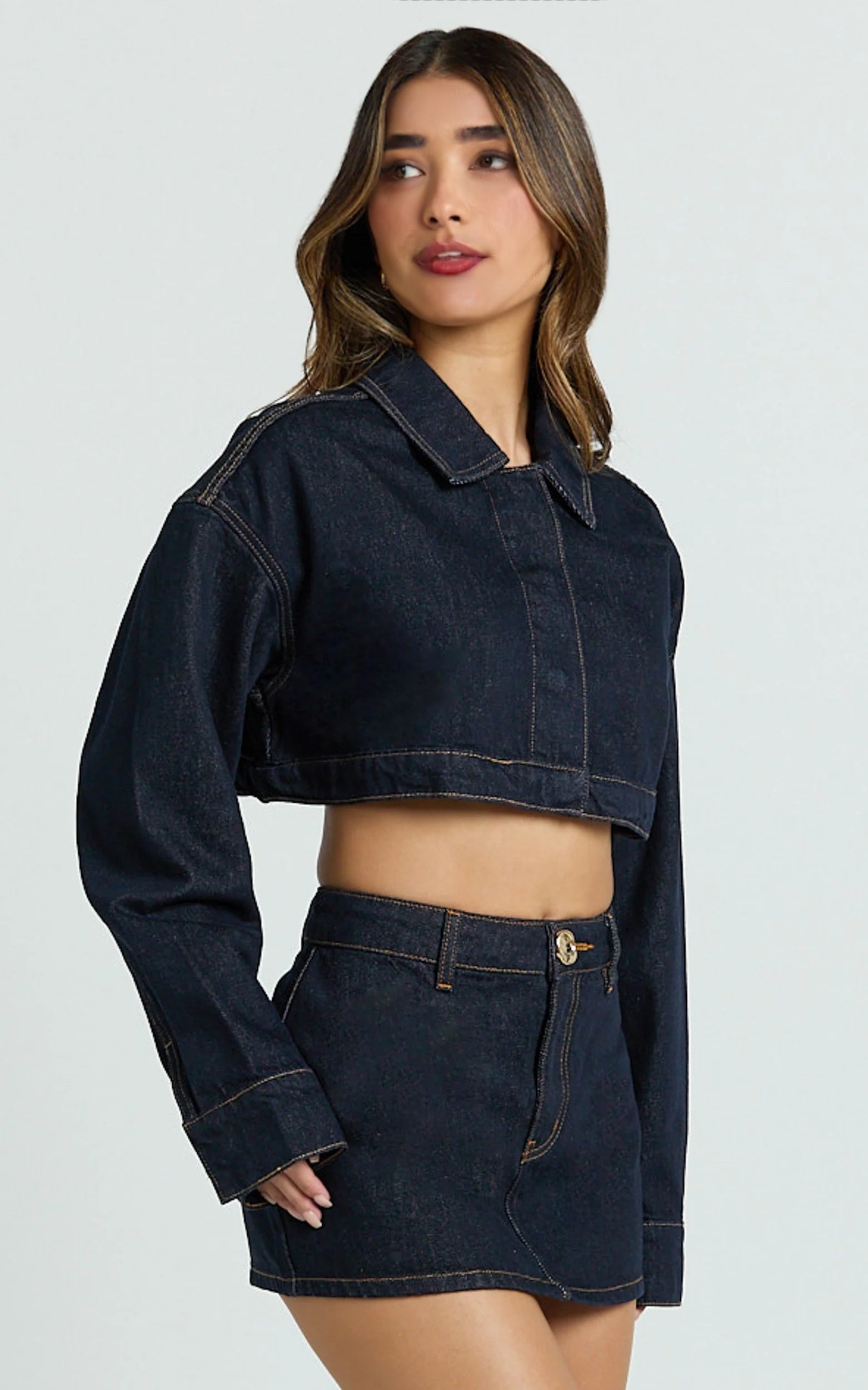 This mid-rise denim skort combines the look of a mini skirt with the comfort of shorts, ideal for casual outings like coffee runs or beach hangouts. The raw denim wash gives it a worn-in look, while the clean cut adds a touch of understated luxury. You can dress it up or keep it casual as you like.