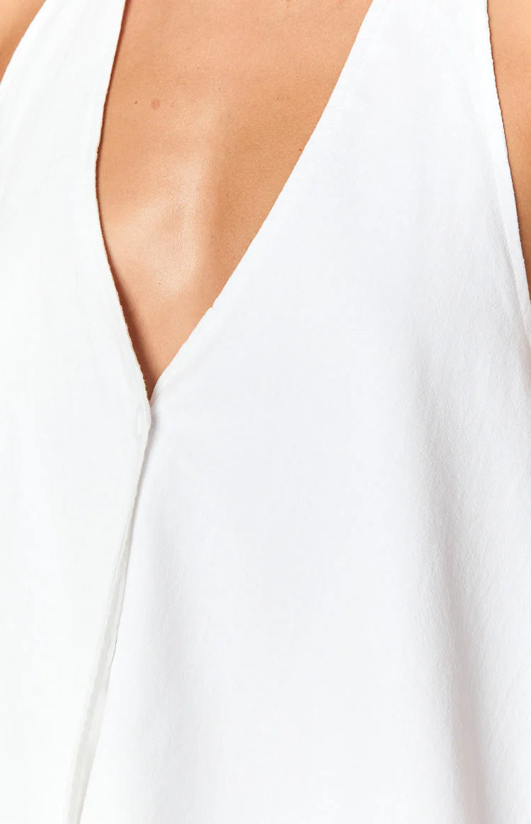 White Halter Neck Linen Blend Vest Top
