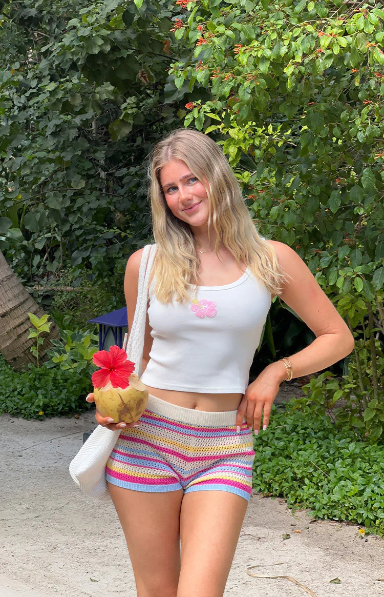 Meet your new staple for sunny weekends, our Remie Cream Stripe Knit Shorts! Crafted from a comfortable crochet knit, these micro shorts feature a flattering high-waisted fit and a simple pull-on style. For a cute and effortless day look, just add a basic white top and sandals.