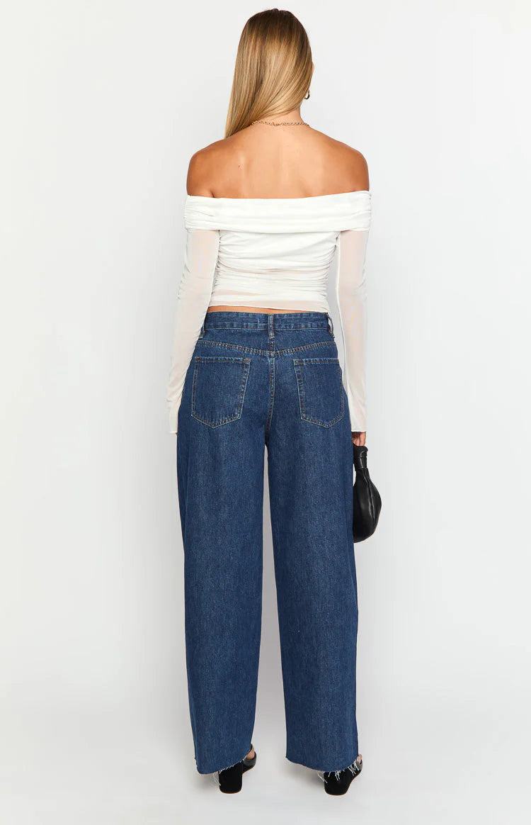 Dark Wash Denim Wide Leg Boyfriend Jeans