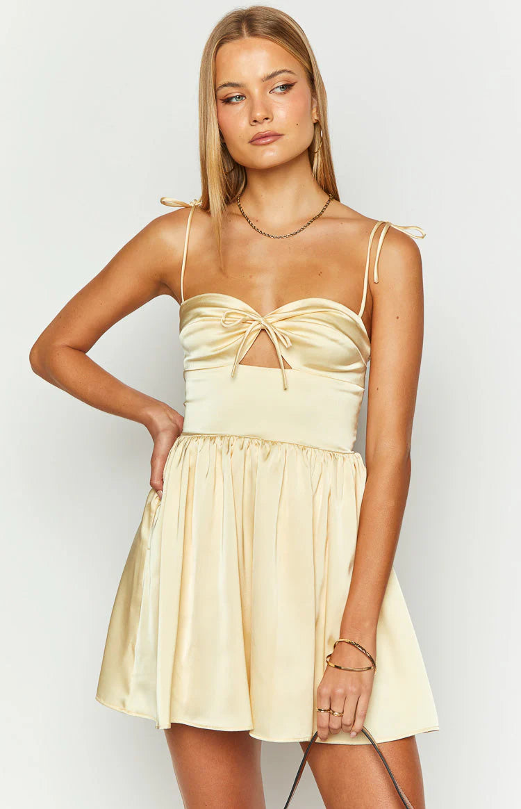 Shine bright in our Sommer yellow mini dress. Perfect for a brunch date or a day out in the sun, style it with nude heels and delicate gold jewellery.
