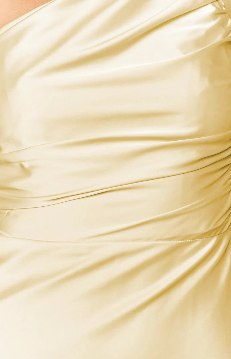 Be the belle of the ball at your next event in this stunning yellow satin gown! Featuring a one shoulder strap and gathering throughout the bodice, this maxi dress is perfect for formals and bridesmaid dresses. Style with dainty gold jewellery and strappy heels to complete the look!