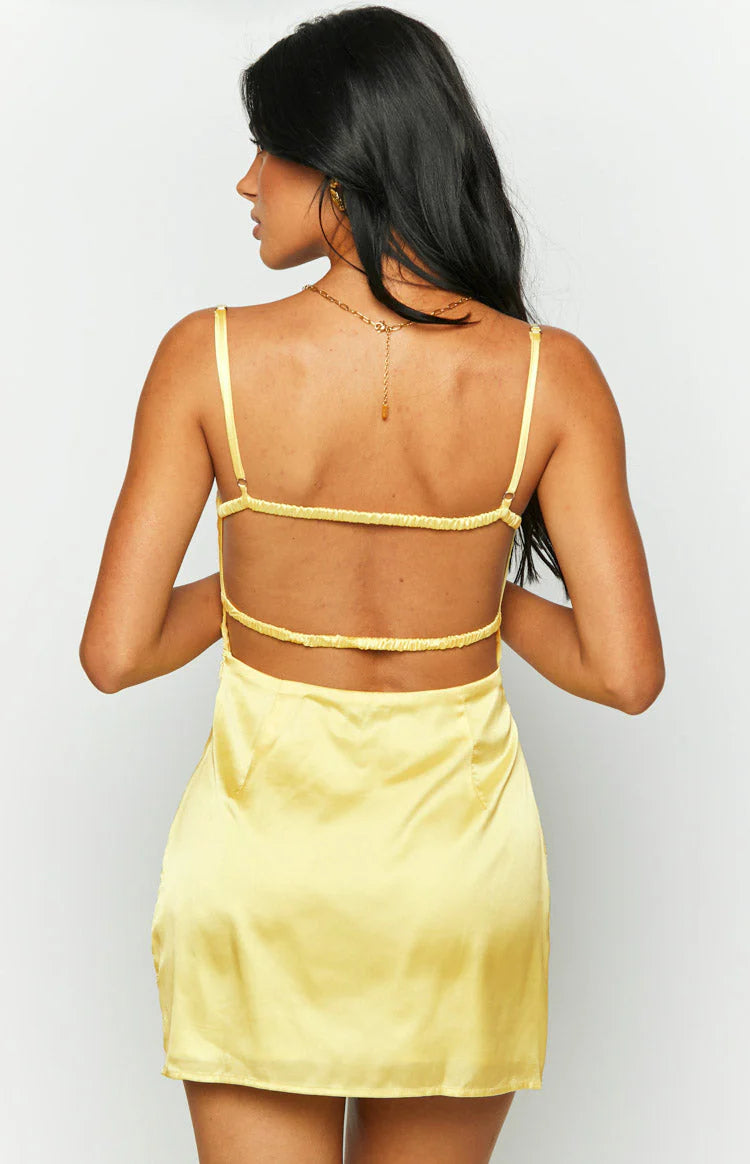 This yellow mini dress is perfect for any event, whether it's day drinking with the girls or date night. Style with some cute?sandals and?sunglasses for a more casual look, or dress it up with clear strappy heels.