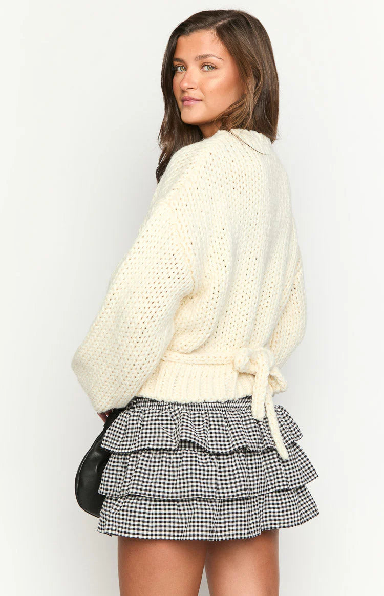 Our Verity Cream Knit Wrap Cardigan is your ultimate companion for crisp autumn days or cosy evenings! Crafted from soft chunky knit, it offers a luxe texture while the flattering V-neck wrap design and adjustable tie closure ensure a perfectly customised, comfortable fit. For an effortlessly relaxed look, layer it over a fitted long-sleeve top and your favourite jeans!