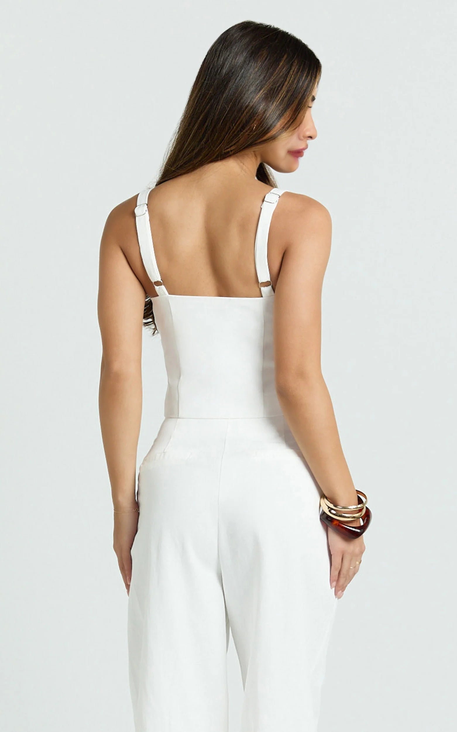 Contoured by sculpted seams and hook-and-eye details, this top shapes and holds your figure, creating a flattering silhouette suitable for both day and night. Pair it with tailored pants or a stylish mini skirt when going out, and switch to low-slung sneakers for a casual look.