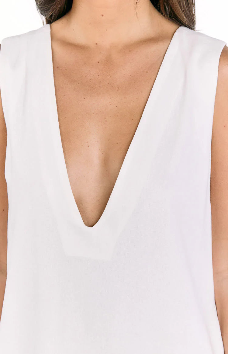 Embrace effortless elegance in our Wynn White Linen Shift Mini Dress, perfect for sunny day adventures or luxe resort wear. This breezy mini features a flattering low V-neckline and delicate back ties at the shoulders, crafted from a light woven material for ultimate comfort. Style it with strappy sandals and a woven tote for a fresh and refined warm-weather look!