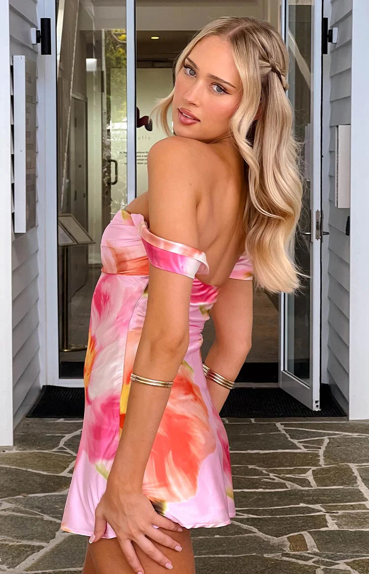 Our Zoella Pink Floral Mini Dress is the perfect mix of playful charm and summer elegance! The vibrant floral print and gathered bust detailing create a flattering and feminine silhouette, while the lightweight satin material ensures comfort. Ideal for a lunch date or day events in the spring, pair it with sandals or heels and add jewellery for a gorgeous look!